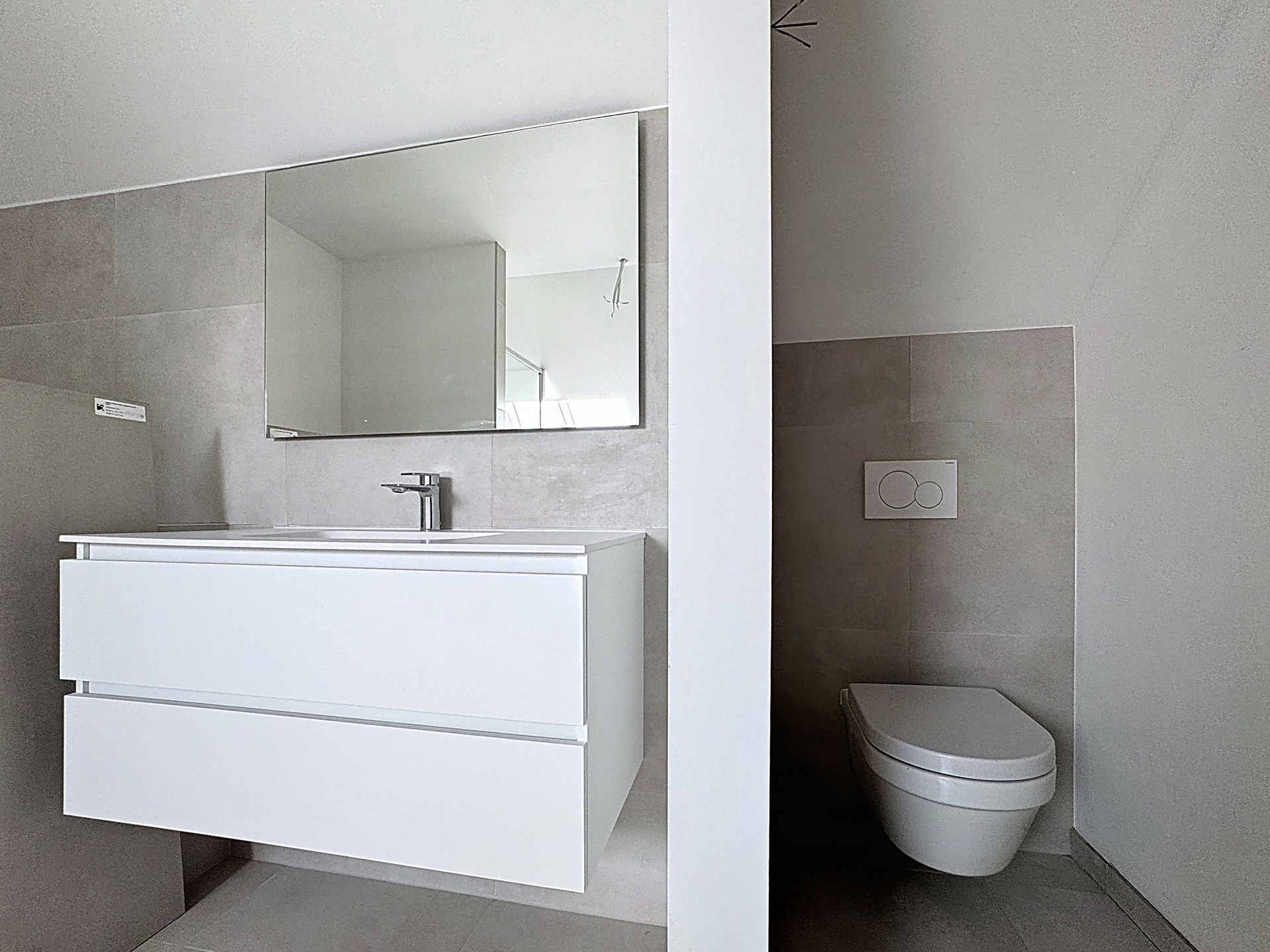 Situé dans un lotissement résidentiel, ce magnifique duplex neuf vous séduira par ses finitions de qualité et son confort moderne. Ce bien est situé au deuxième et dernier étage de la copropriété, à droite en regard de la façade. Sur son premier niveau, il est composé d'un séjour ouvert sur l'espace cuisine (prévue et placée par le fournisseur "Meubles de Malines" d'un budget de 8500 euros HTVA), un w-c individuel, un hall de nuit, une buanderie, une salle de bains (baignoire et douche), deux chambres et une terrasse. Sur son second niveau : un hall et une suite parentale avec salle de douche et espace aménageable en bureau ou dressing. Au sous-sol se trouve une cave privative (7,5 m²). Double vitrage sur châssis aluminium (Pierret), PAC air/eau Daikin, chauffage sol au premier niveau, ventilation double flux, électricité conforme. Parking privatif en extérieur. Compteurs individuels. Prix indiqué hors TVA et hors frais de raccordements (4000 euros HTVA). La superficie renseignée est brute. Renseignements syndic sur demande. PEB : A. (Infos non-contractuelles).