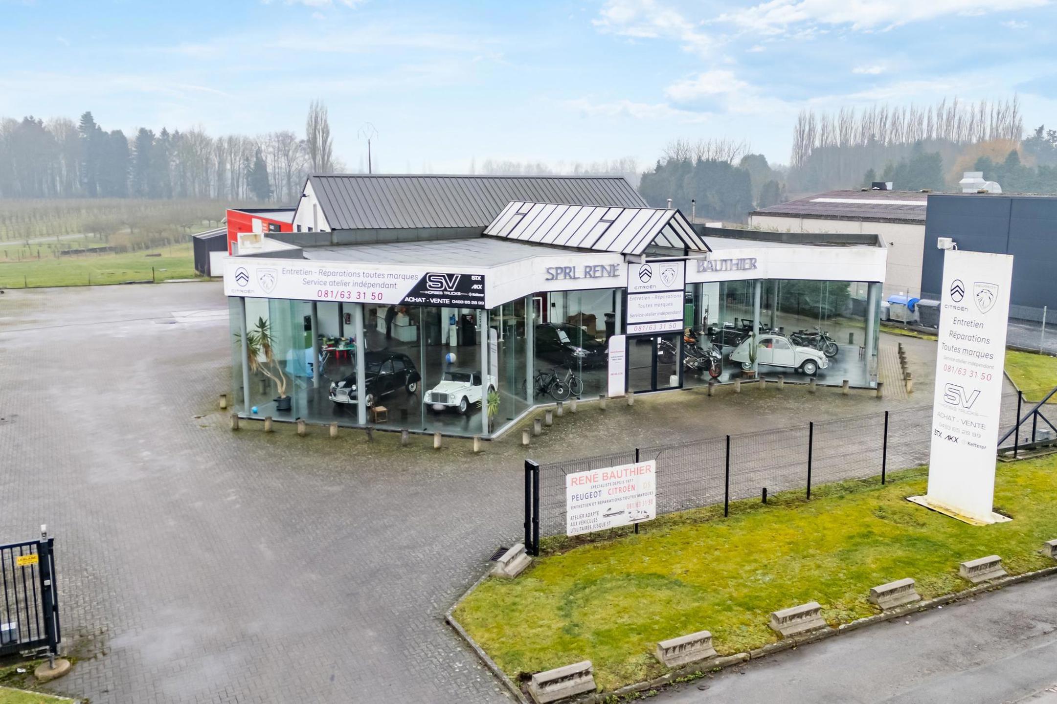 Jouissant d'une visibilité exceptionnelle et stratégique sur la N29 de Gembloux. Ensemble immobilier comprenant: un bâtiment utilitaire mixte en ossature métallique de 2001 érigé sur une parcelle de 8.751 m² entièrement bâtissable, dans un zoning industriel. Le terrain à bâtir offre un réel potentiel d’extension ou de développement complémentaire, idéal pour tout projet professionnel souhaitant évoluer sur le long terme. Composé d'un show-room vitré de 287 m² agrémenté de ses 3 bureaux, d'un atelier/garage automobile de 331 m² disposant de 6 portes sectionnelles dont une de 5m de haut, parfaitement adapté pour les activités mécaniques, logistiques ou artisanales. À l'étage, un vaste appartement de 141 m² disposant également d'un local de 32 m² vous permettant le stockage ou des bureaux supplémentaires. Au second étage, une superficie de 114 m² laissant libre cours à votre imagination. Parking 50 places, parcelle sécurisée, porte sectionnelle motorisée, alarme avec système de vidéosurveillance, châssis DV PVC, chauffage central au mazout. Atouts majeurs : grand garage fonctionnel et terrain à bâtir offrant de nombreuses possibilités. Opportunité idéale dans une région dynamique ! Vente sous forme de cession de parts sociales. Faire offre à partir de 1.495.000 €.